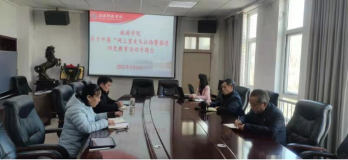 2021年3月4日上午,威尼斯432888cam在经管楼会议室召开“网上重走长征路”暨推动“四史”学习教育活动专题会,学院全体领导班子成员、团委书记、专职组织员参加了会议。会议由院党委书记曹明贵主持。